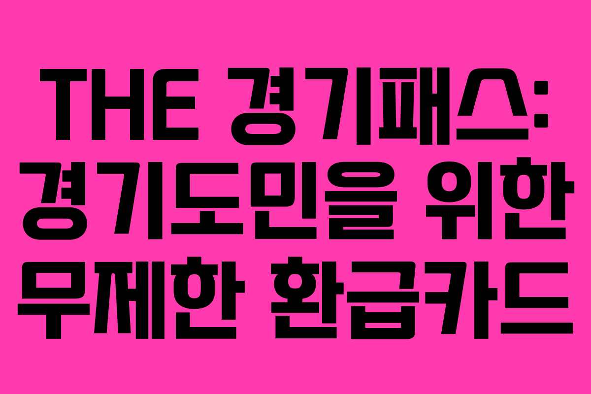 아래를 읽어보시면, 2025-08 기준으로 경기도민을 위한 무제한 환급카드 ‘더 경기패스’의 신청 방법과 혜택에 대해 자세히 알아보실 수 있습니다. 이 카드는 경기도에 거주하는 19세 이상의 주민에게 대중교통 이용 시 교통비를 지원합니다.