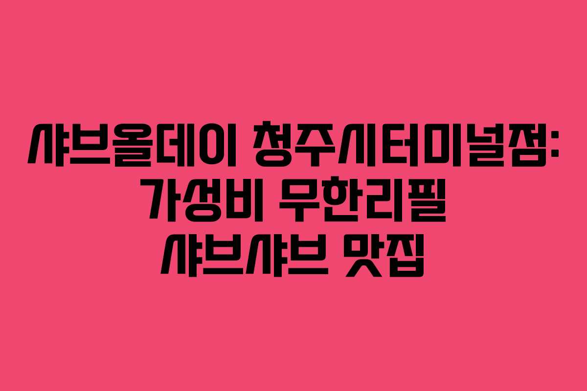 청주에서 가성비 좋은 샤브샤브 무한리필을 찾고 계신가요? 그렇다면 샤브올데이 청주시터미널점을 추천드립니다! 이곳은 다양한 메뉴와 합리적인 가격으로 입소문을 타고 있는 맛집입니다. 아래를 읽어보시면 이 매장의 특징과 장단점, 자주 묻는 질문까지 자세히 알아볼 수 있습니다.