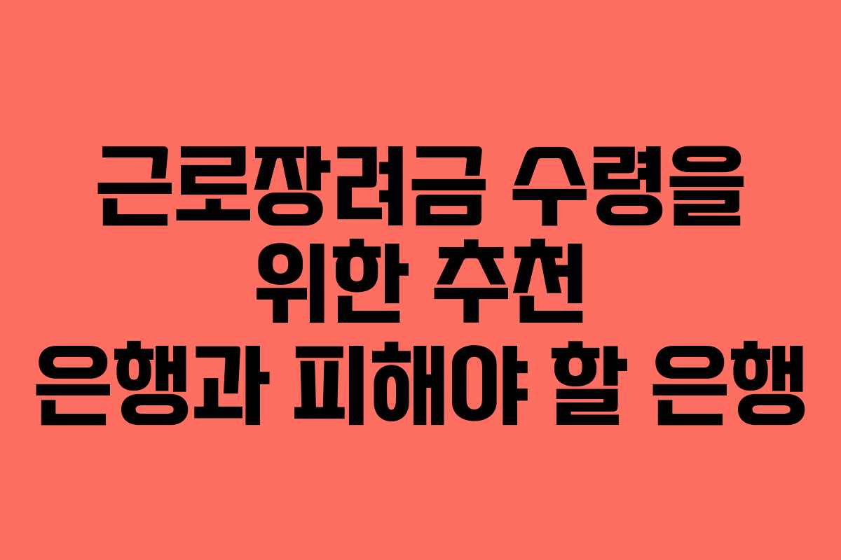 근로장려금 수령을 위한 추천 은행과 피해야 할 은행