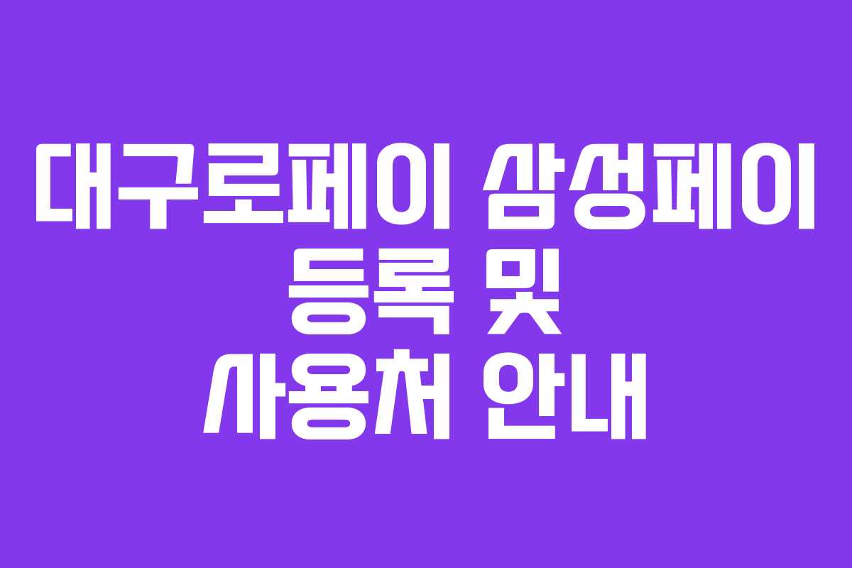 대구광역시의 지역화폐인 대구로페이가 7월부터 충전 가능하다는 소식이 있습니다. 이 지역화폐는 대구 지역 경제를 활성화하고 소상공인을 지원하기 위해 설계되었습니다. 이번 글에서는 대구로페이를 삼성페이에 등록하는 방법과 사용처에 대해 자세히 알아보겠습니다.