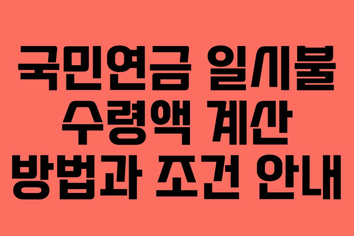 국민연금 일시불 수령액 계산 방법과 조건 안내