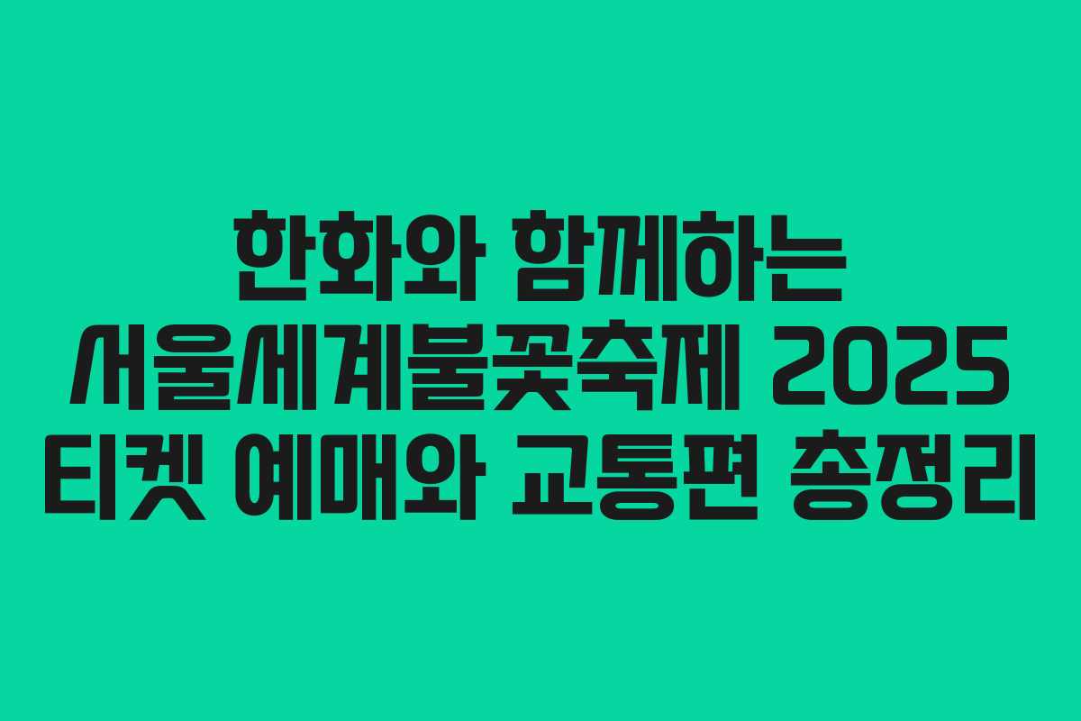 한화와 함께하는 서울세계불꽃축제는 매년 많은 사람들에게 즐거움과 감동을 주는 행사입니다. 티켓 예매, 교통편 안내, 불꽃 명당 추천 등 축제의 모든 정보를 통해 특별한 순간을 만끽하시기 바랍니다. 축제 기간 동안 최고의 경험을 위해 사전 준비를 철저히 하세요!