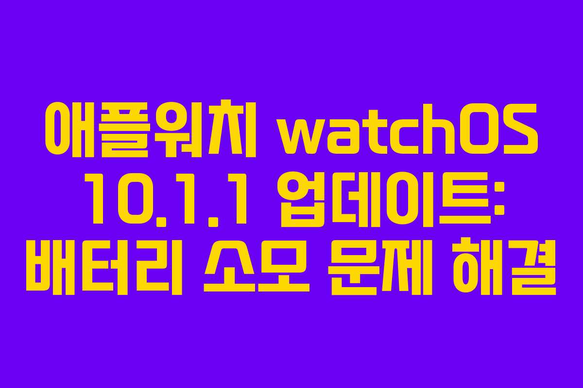 애플이 최근 배포한 애플워치 OS 업데이트인 watchOS 10.1.1은 배터리 소모 문제를 해결하는 데 초점을 맞추고 있습니다. 일부 사용자들은 이 업데이트를 통해 더욱 안정적인 사용 환경을 경험할 수 있을 것입니다.