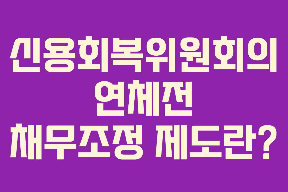 채무조정은 대출금을 제때 갚지 못할 것으로 예상되는 상황에서 채무자가 선택할 수 있는 중요한 제도입니다. 신용회복위원회에서는 연체 위기에 처한 이들을 위해 다양한 지원을 제공하고 있습니다. 특히, 연체전 채무조정(신속채무조정) 제도는 연체가 우려되는 대출자에게 큰 도움이 됩니다.
