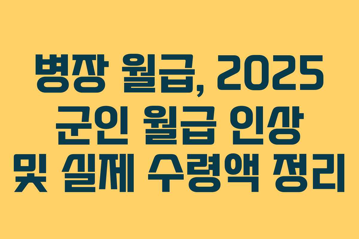 병장 월급, 2025 군인 월급 인상 및 실제 수령액 정리