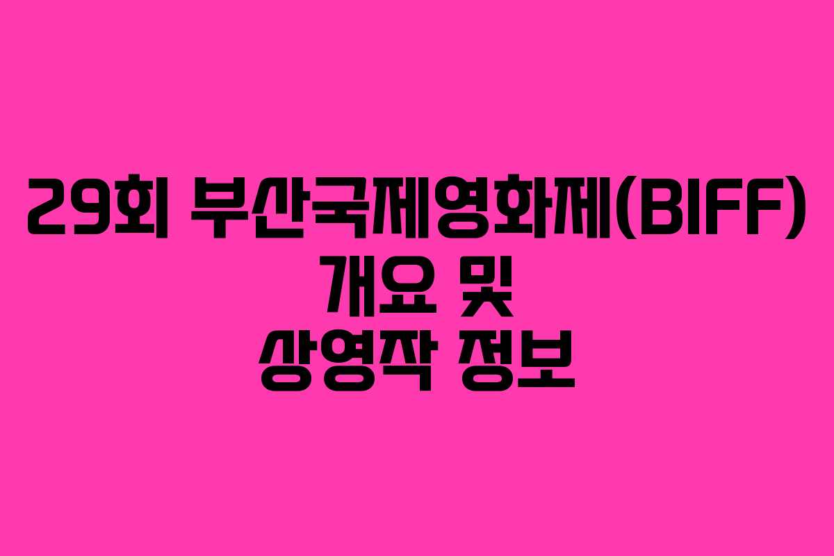 29회 부산국제영화제(BIFF) 개요 및 상영작 정보