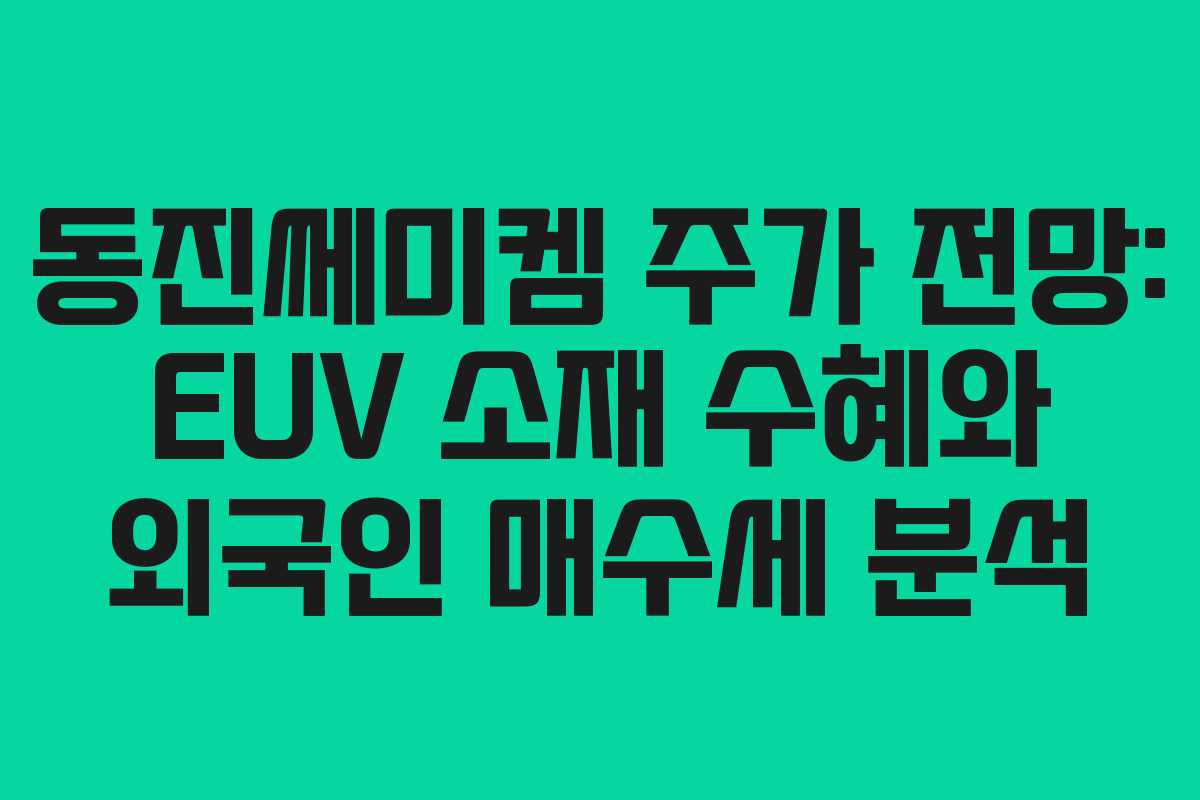 외국인 매수세는 주가에 긍정적인 영향을 미치며, 특히 동진쎄미켐은 최근 코스닥 외국인 순매수 1위에 올라 많은 관심을 받고 있습니다.