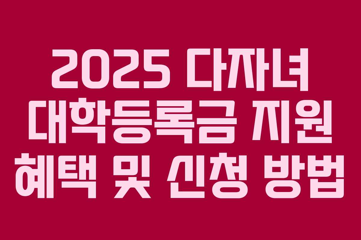 2025년부터 시행되는 다자녀 가정을 위한 대학등록금 지원 제도는 자녀가 2명 이상인 가정에서 대학생을 둔 경우에 제공되는 장학 혜택입니다. 이 제도를 통해 부모의 경제적 부담을 덜고, 자녀의 학업을 지원할 수 있습니다.