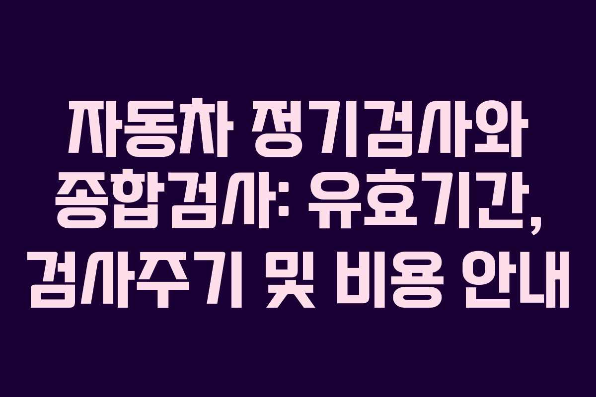 자동차 정기검사와 종합검사는 차량의 안전과 환경 보호를 위해 필수적으로 수행해야 하는 검사입니다. 이 두 검사의 차이점과 검사 주기, 비용에 대해 알아보겠습니다.