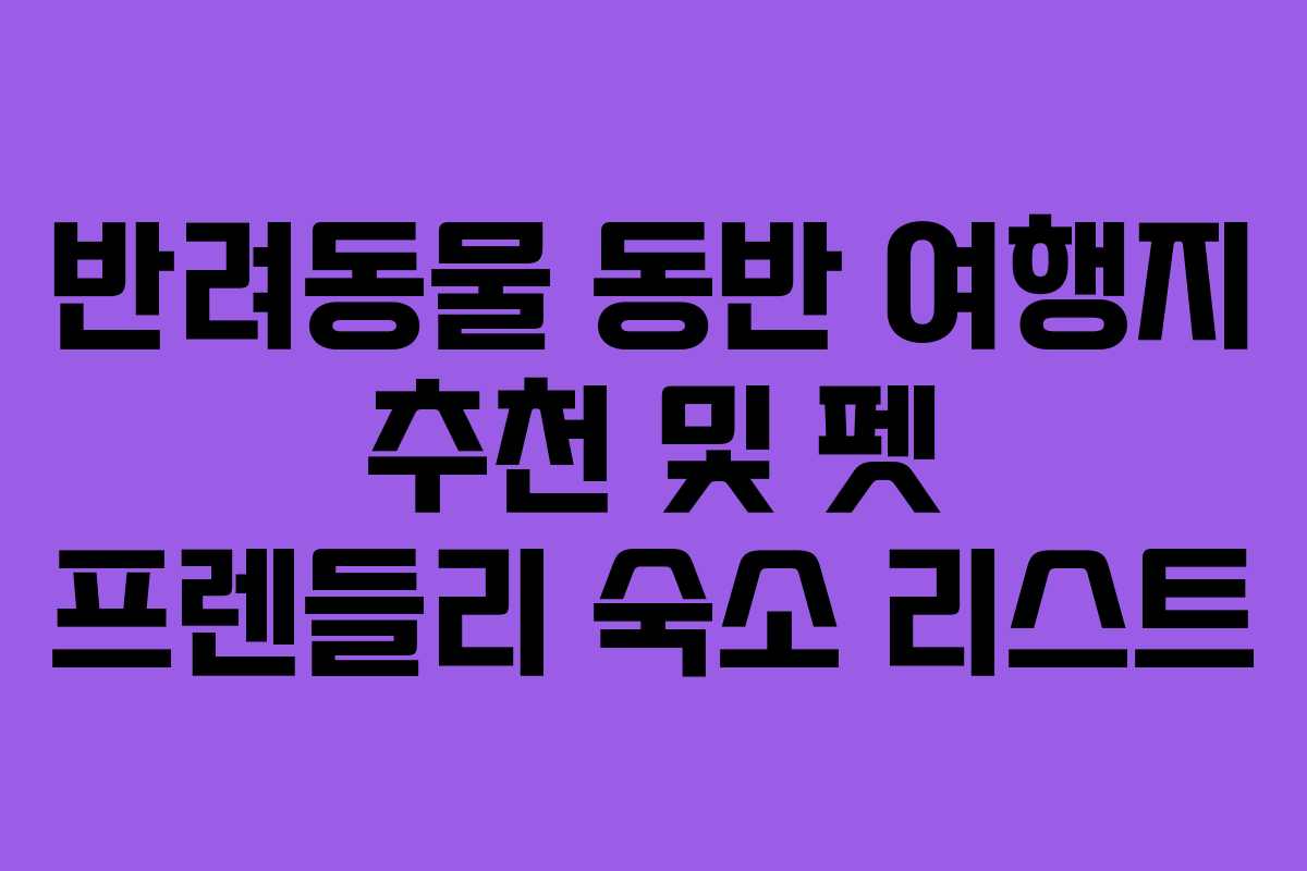 사랑하는 반려동물과의 여행은 특별한 경험이 됩니다. 하지만 여행을 계획할 때는 여러 가지 고려해야 할 사항들이 있습니다. 반려동물과 함께 편안하게 여행할 수 있는 장소와 숙소를 찾는 것이 중요합니다. 이번 글에서는 2025년 최신 정보를 바탕으로 반려동물 동반 여행지와 펫 프렌들리 숙소를 추천하고, 성공적인 여행을 위한 팁을 제공하겠습니다.