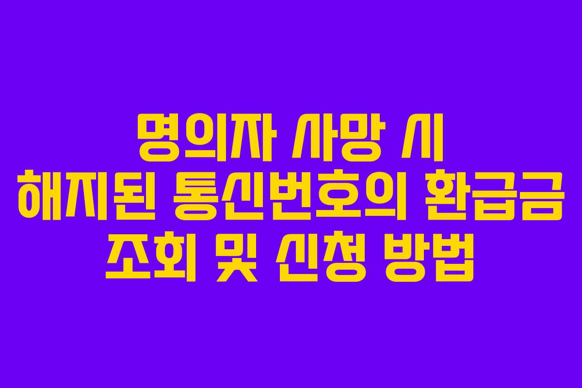 명의자가 사망한 경우에도 해지된 통신번호에 대한 환급금을 상속인이 청구할 수 있습니다. 이번 글에서는 환급금 발생 사례부터 조회 및 신청 방법까지 자세히 안내하겠습니다.