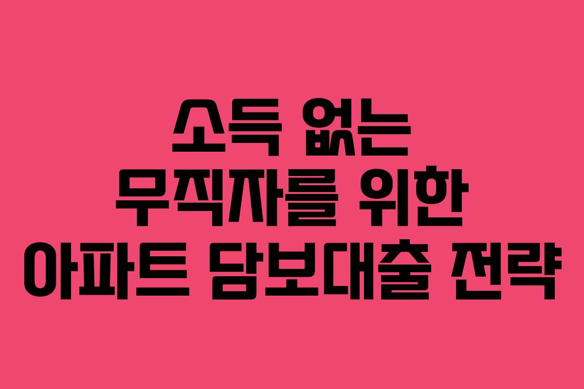 아파트 담보대출은 주택을 담보로 대출을 받는 방식으로, 차주가 상환능력을 증명해야 합니다. 그러나 무직자나 소득이 없는 경우, 대출 승인 과정이 복잡해질 수 있습니다.