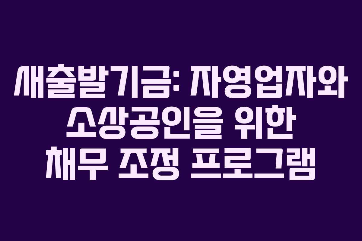 새출발기금은 코로나19로 인해 어려움을 겪고 있는 자영업자와 소상공인을 위한 정부의 채무 조정 프로그램입니다. 2022년 10월 4일부터 시행된 이 기금은 대출 상환에 어려움을 겪는 분들에게 도움을 주기 위해 마련되었습니다.
