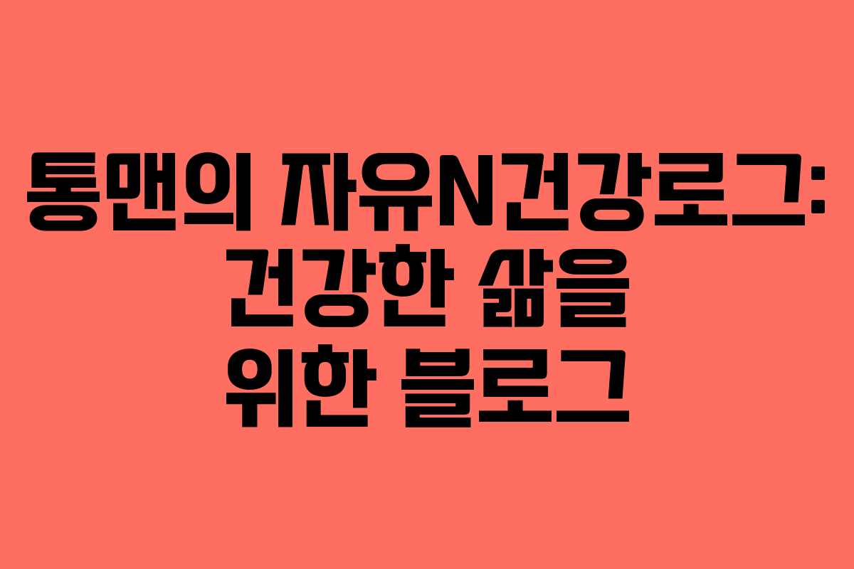 건강은 우리 삶에서 매우 중요한 요소입니다. 통맨의 자유N건강로그는 건강에 대한 다양한 정보를 제공하며, 독자들이 보다 건강한 삶을 영위할 수 있도록 돕는 블로그입니다.