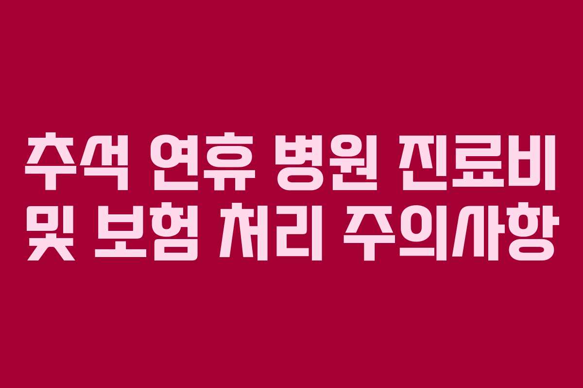 추석 연휴 병원 진료비 및 보험 처리 주의사항