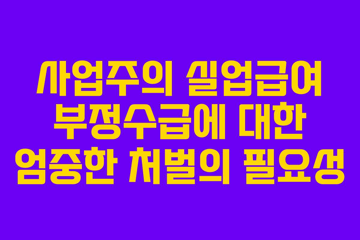 실업급여 부정수급은 사회적 불공정성을 초래하는 중대한 문제입니다. 이는 정당한 권리를 가진 수급자에게 피해를 주며, 사회적 분배 체계를 해치는 행위로 간주됩니다. 따라서 사업주에 대한 엄격한 처벌이 반드시 필요합니다.