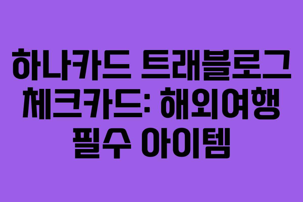 하나카드 트래블로그 체크카드는 해외 여행을 더욱 편리하게 만들어주는 필수 아이템으로, 환전의 번거로움을 덜어줍니다. 수수료가 무료인 이 카드를 이용해 여행의 즐거움을 더해 보세요.
