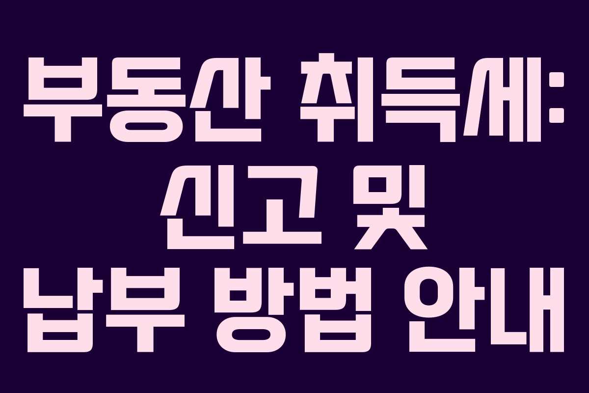 부동산을 취득하면 취득세를 납부해야 하며, 이는 매매, 상속, 증여 등의 방식으로 부동산을 취득한 날로부터 60일 이내에 신고 및 납부해야 합니다. 이 글에서는 부동산 취득세 납부 방법, 신고 기한, 절차, 주의 사항 및 가산세 방지 방법에 대해 자세히 설명하겠습니다.