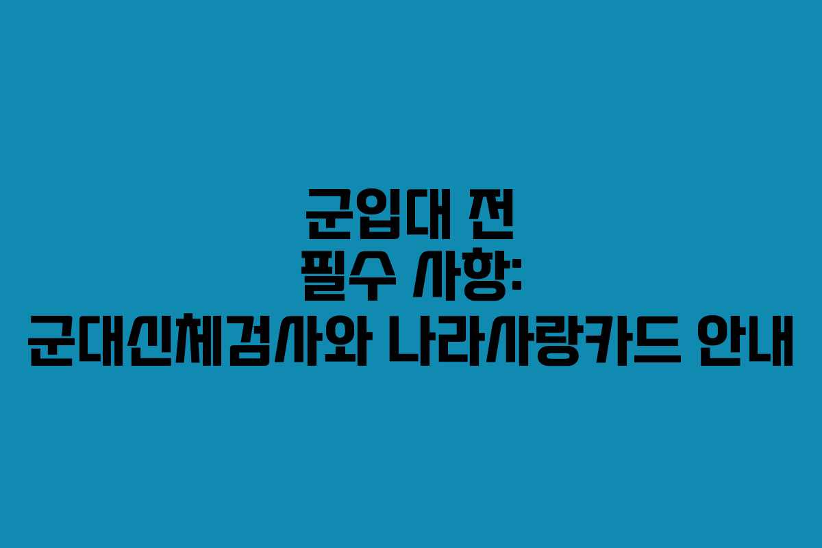 군입대는 많은 이들에게 긴장감을 주는 순간입니다. 그중에서도 군대신체검사는 첫 번째 관문으로, 단순한 신체검사를 넘어 적성과 건강을 종합적으로 평가하는 중요한 과정입니다. 이 글에서는 군대신체검사의 절차와 함께 나라사랑카드에 대한 정보를 제공하겠습니다.