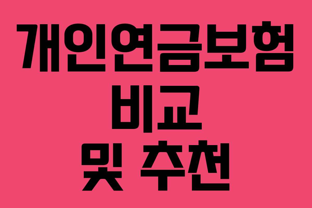 개인연금보험 비교 및 추천