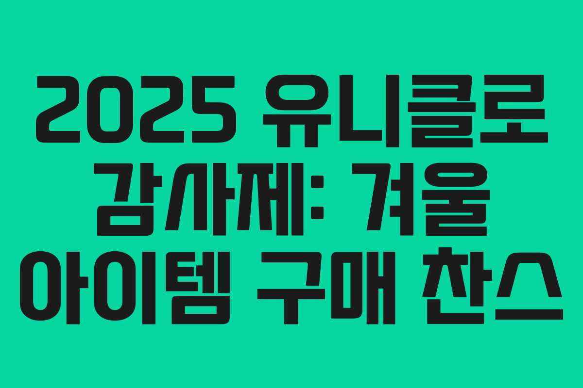 2025 유니클로 감사제: 겨울 아이템 구매 찬스