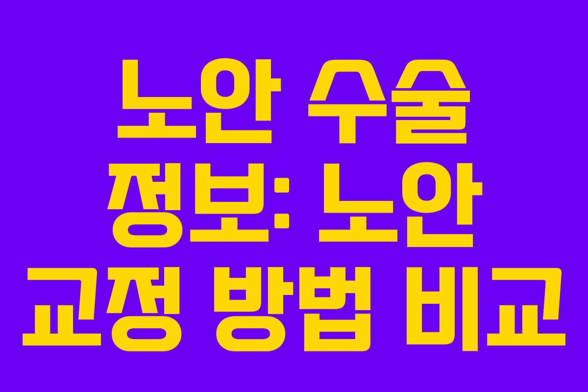 노안 수술 정보: 노안 교정 방법 비교