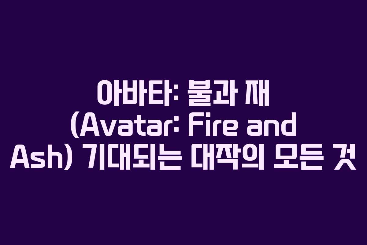 아바타: 불과 재 (Avatar: Fire and Ash) 기대되는 대작의 모든 것