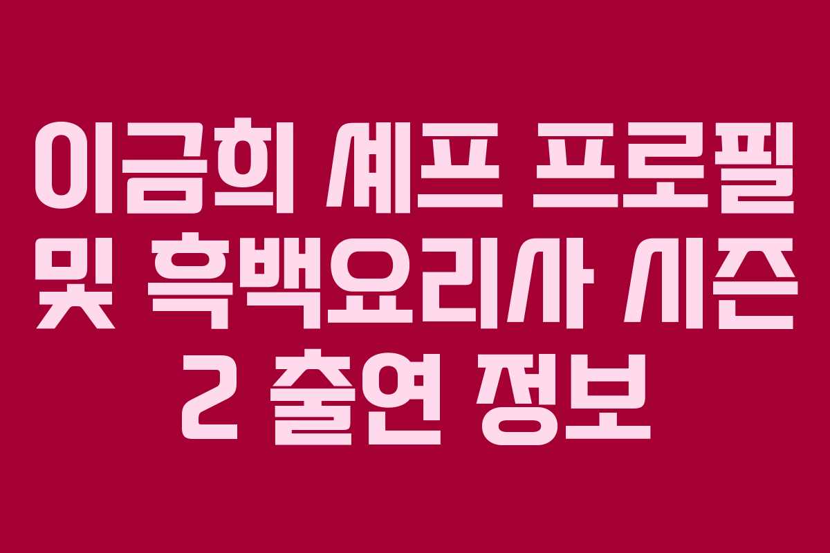 이금희 셰프는 국내 최초의 5성 호텔 여성 총조리장으로, 흑백요리사 시즌 2에 출연합니다. 그녀의 경력과 개인적인 배경에 대해 알아보겠습니다.