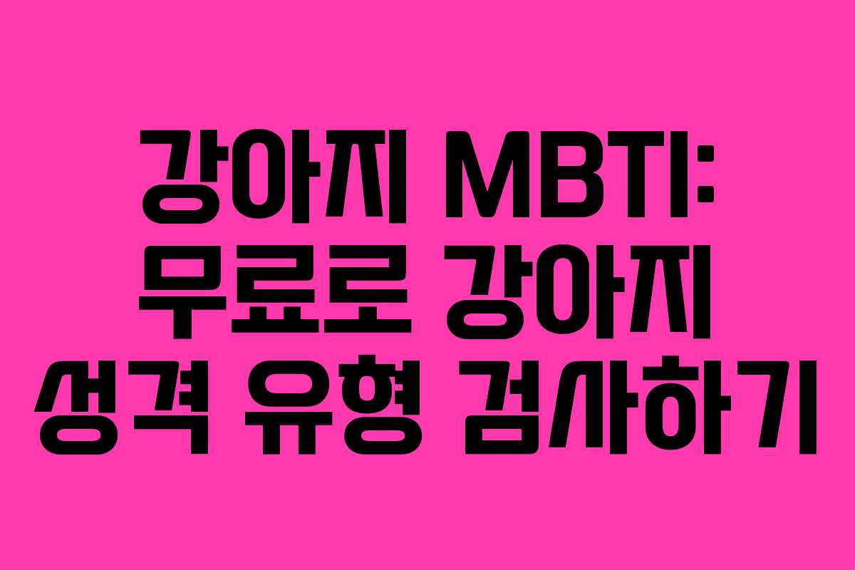 강아지의 성격을 파악하는 것은 반려견과의 소통을 원활하게 하고, 효과적인 교육을 위해 중요합니다. 오늘은 무료로 강아지 MBTI 성격 유형 검사를 할 수 있는 두 가지 사이트를 소개하겠습니다.