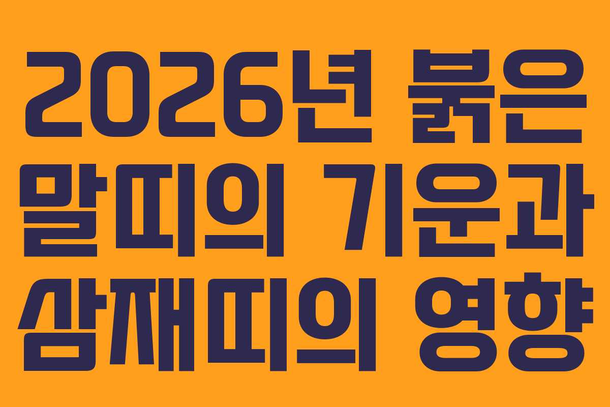 - 2026년의 에너지를 이해하고 준비한다. 각자의 띠와 삼재의 영향을 미리 파악한다.