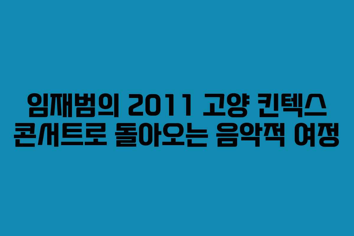 2011년 임재범의 콘서트는 그가 오랜 침묵을 깨고 대중 앞에 나서는 기념비적인 자리가 될 것입니다. 그의 가창력은 이미 많은 사람들에게 인정받았으며, 특히 ‘나는 가수다’ 프로그램에서의 무대는 그의 매력을 다시 한번 각인시켰습니다. 이번 공연에서는 ‘너를 위해’, ‘고해’, ‘비상’ 등 그의 많은 히트곡이 열창될 예정입니다. 이러한 곡들은 그의 음악적 여정을 잘 보여주며, 팬들에게 잊지 못할 순간을 선사할 것입니다.