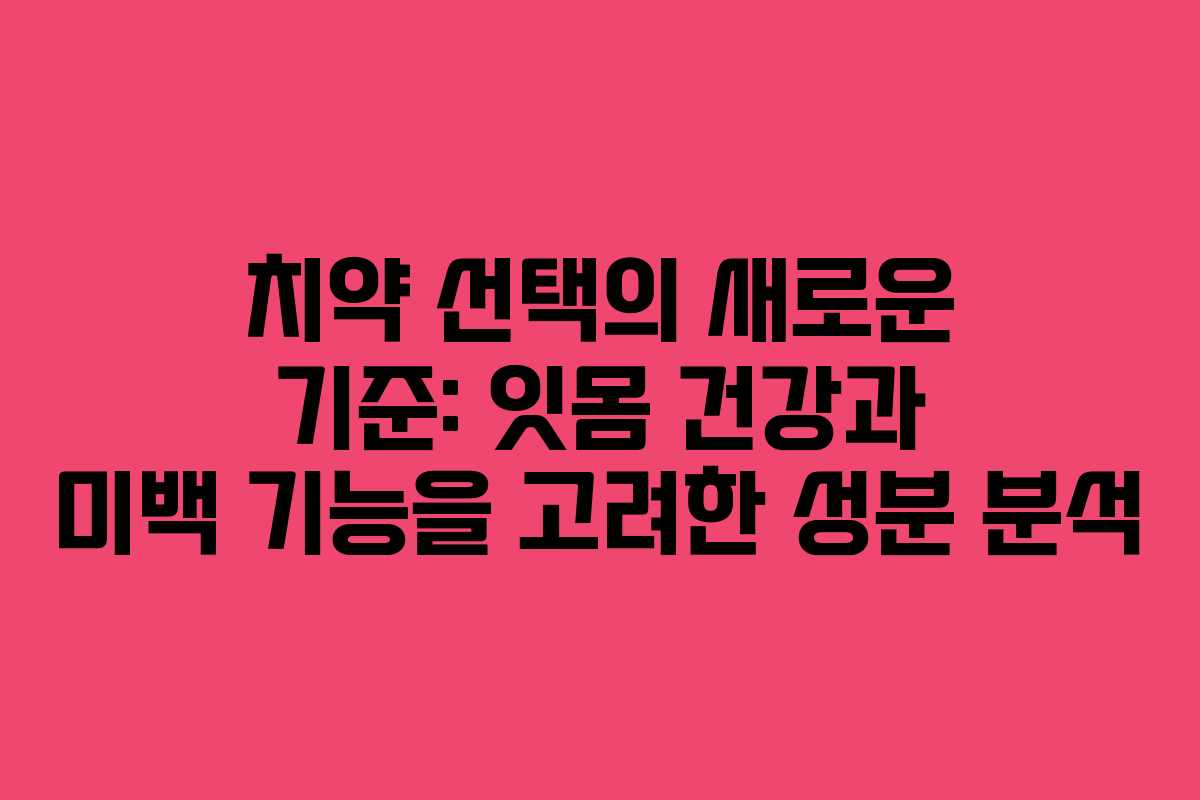미백 기능은 개인의 필요에 따라 선택할 수 있는 요소입니다. 잇몸 건강이 우선이라면 잇몸 관련 성분을, 미백이 필요하다면 하이드록시아파타이트 성분을 체크하는 것이 좋습니다.