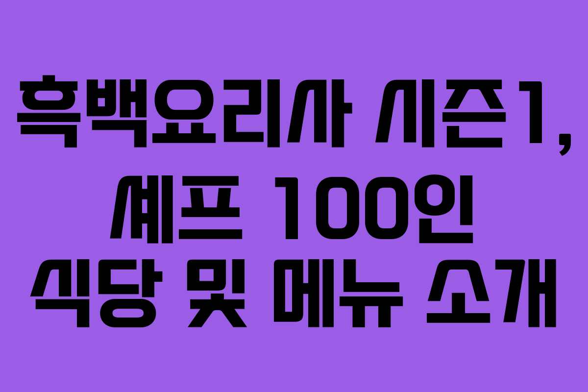 2025년 5월 8일 기준으로 흑백요리사 시즌1에 참여한 셰프 100인의 식당과 메뉴를 살펴보자. 이 시즌에서는 다양한 요리 스타일과 독특한 메뉴를 선보이는 셰프들이 참여하여 각자의 개성을 표현하고 있다. 아래에서는 상위 8개의 식당과 대표 메뉴를 중심으로 소개할 예정이다.