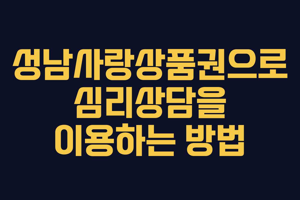 이와 같은 절차를 통해 성남사랑상품권을 활용하여 심리 상담을 원활히 받을 수 있다. 이를 통해 지역 주민들이 보다 쉽게 심리적 지원을 받을 수 있도록 돕는 것이 목표다.