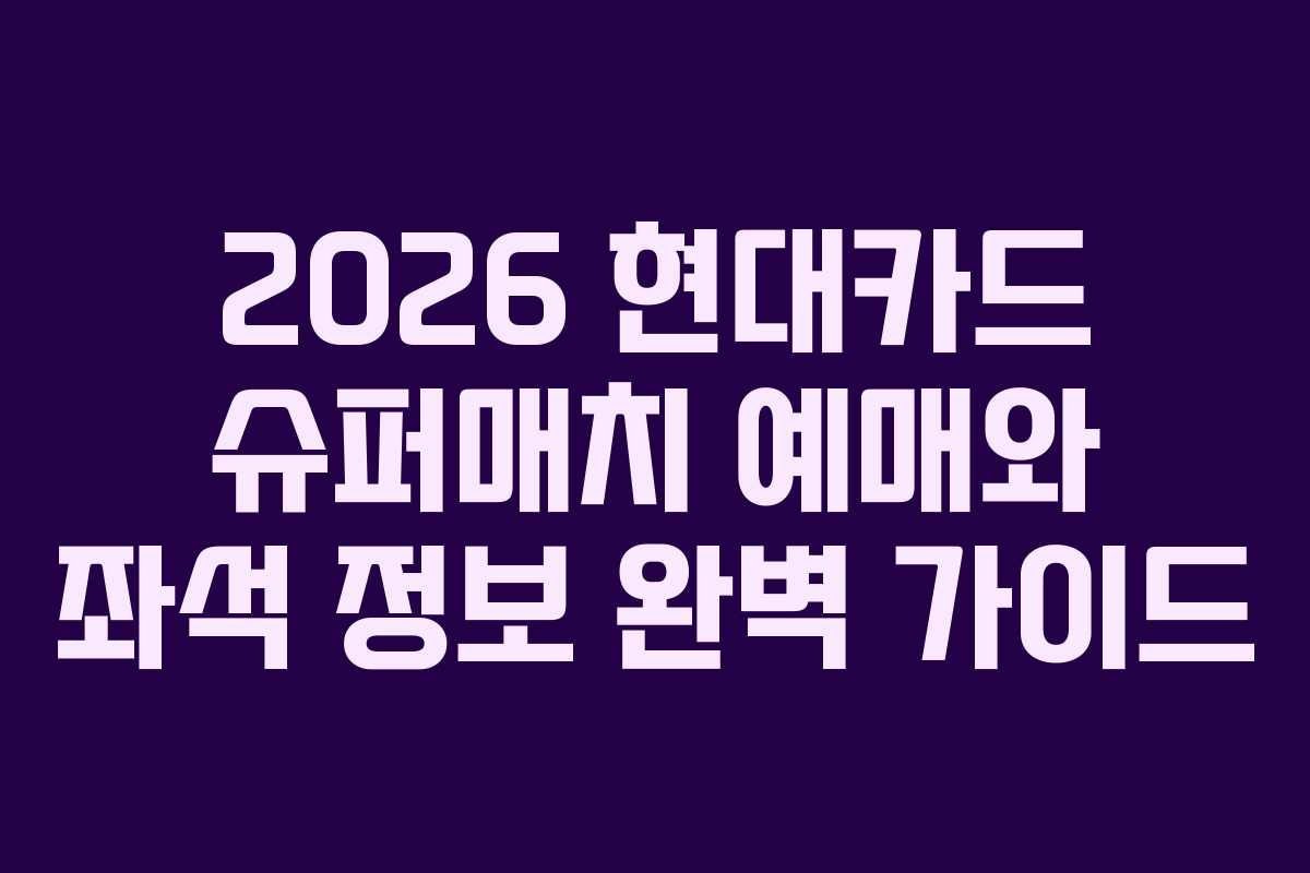 2026년 현대카드 슈퍼매치 14의 경기는 인천 인스파이어 리조트 아레나에서 오후 4시에 시작됩니다. 이 경기는 최대 15,000명이 수용 가능한 대규모 실내 경기장에서 진행됩니다. 예매는 두 단계로 나뉘어 진행되며, 첫 번째 단계인 현대카드 회원 선예매는 2025년 11월 18일 화요일 낮 12시에 시작됩니다. 이후 11월 19일 수요일 낮 12시부터 일반 예매가 오픈됩니다.
