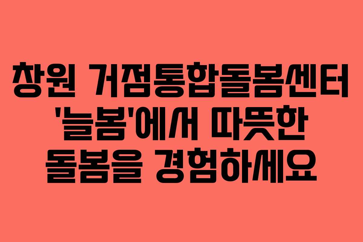 ‘늘봄’은 학생들에게 필요한 돌봄 서비스를 제공하여 학업과 정서적 지원을 동시에 할 수 있도록 돕고 있습니다. 이 센터는 창원시 의창구 명서로에 위치해 있으며, 명서초와 인근 학교의 학생들이 이용할 수 있습니다. 돌봄센터는 학생들이 즐겁고 안전하게 지낼 수 있도록 다양한 프로그램을 마련하여 운영합니다.