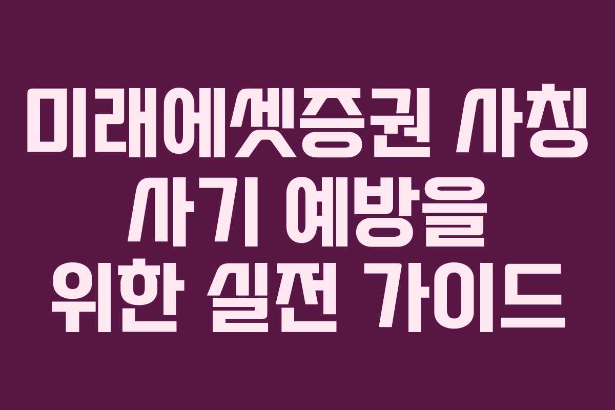 미래에셋증권 사칭 사기 예방을 위한 실전 가이드