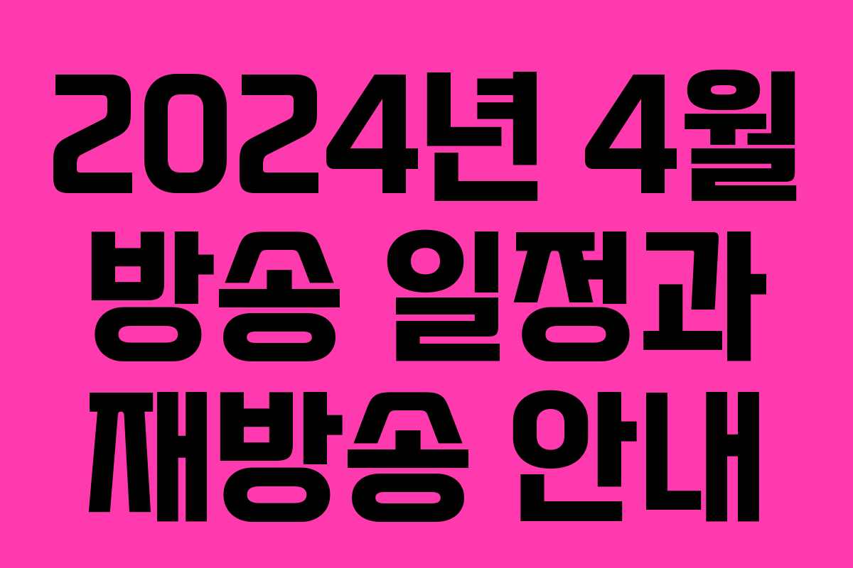 2024년 4월의 다양한 방송 일정은 스포츠와 예능 프로그램으로 가득 차 있다. 이 글에서는 주요 방송 일정과 함께 재방송 관련 정보도 함께 제공하겠다. 이를 통해 원하는 프로그램을 놓치지 않고 시청할 수 있도록 도와줄 것이다.