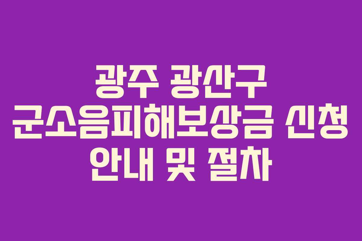 2025년 광주 광산구에서 군소음피해보상금 신청이 시작됩니다. 해당 지역의 주민들은 소음 피해에 대한 정당한 보상을 받을 수 있는 기회를 놓치지 말아야 합니다. 신청 방법은 온라인, 방문, 우편 등 다양하며, 기한 내 신청을 하지 않으면 보상금을 받을 수 없으므로 주의가 필요합니다. 신청 기간은 2025년 1월 8일부터 2월 28일까지입니다.