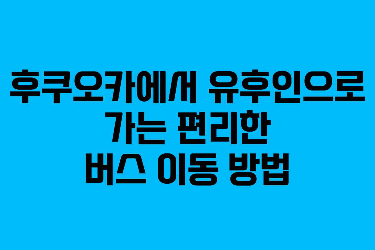 후쿠오카에서 유후인으로의 이동은 버스를 이용하는 것이 매우 편리하다. 특히 하카타역에서 바로 출발하는 버스가 있어 접근성이 뛰어나고, 자주 운행되기 때문에 여행 계획을 세우기 쉽다. 유후인은 일본의 아름다운 온천 마을로 유명하여 많은 관광객이 찾는 곳이다. 본문에서는 후쿠오카에서 유후인으로 가는 버스 이용 방법을 상세히 안내한다.