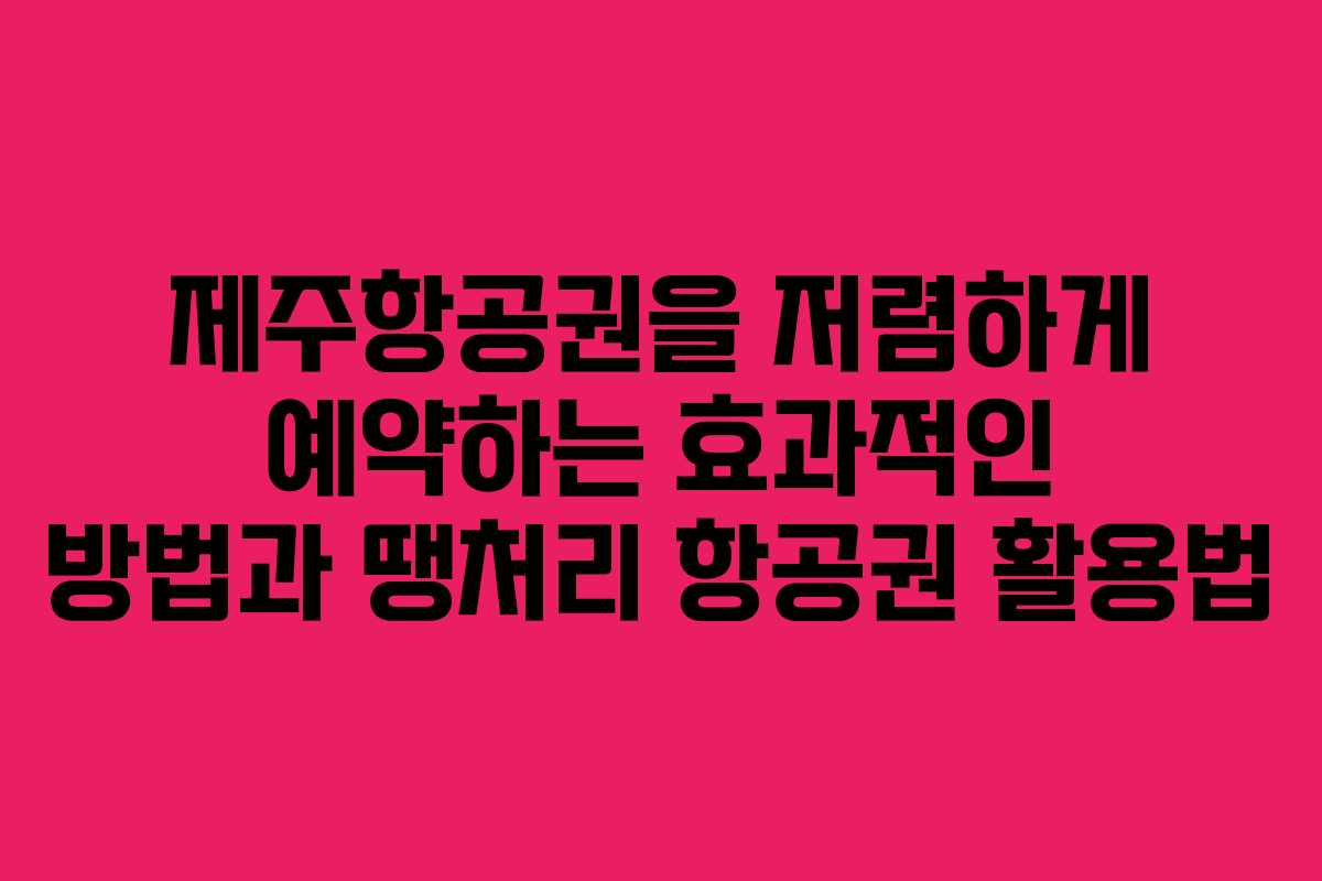 제주항공권을 저렴하게 예약하는 효과적인 방법과 땡처리 항공권 활용법