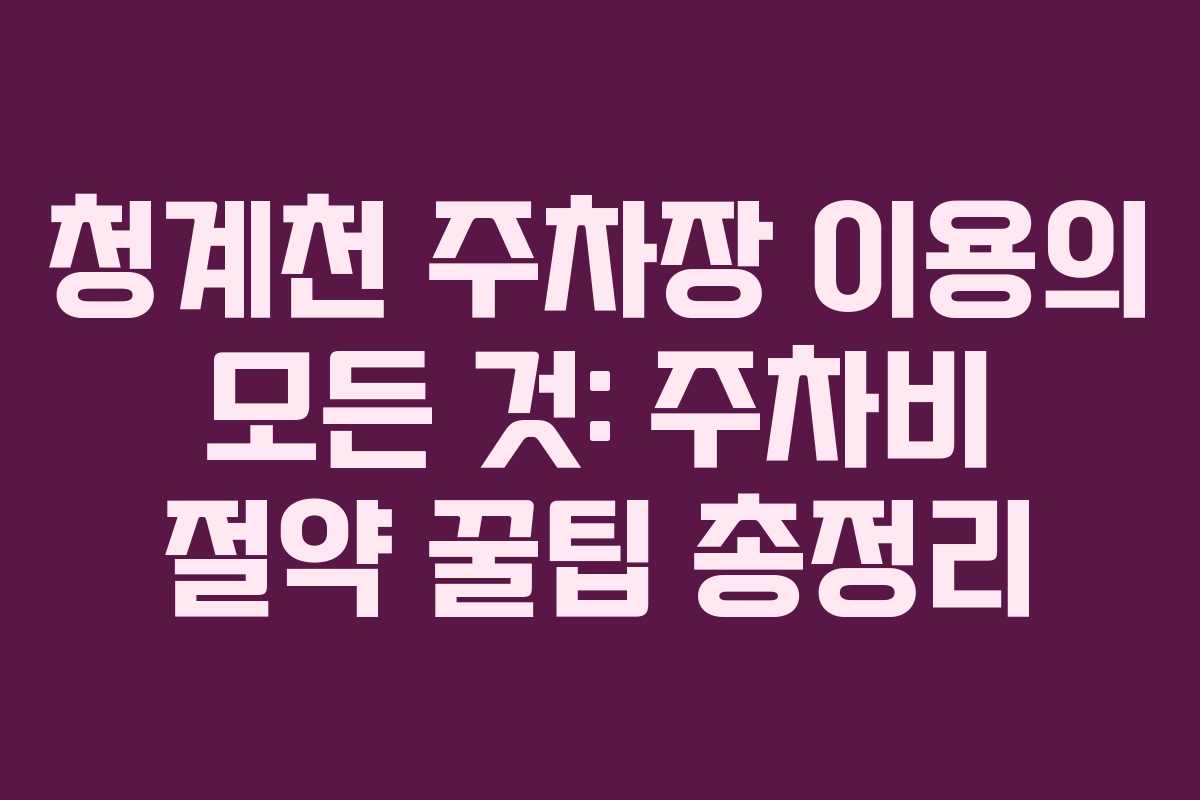 청계천 주차장 이용의 모든 것: 주차비 절약 꿀팁 총정리