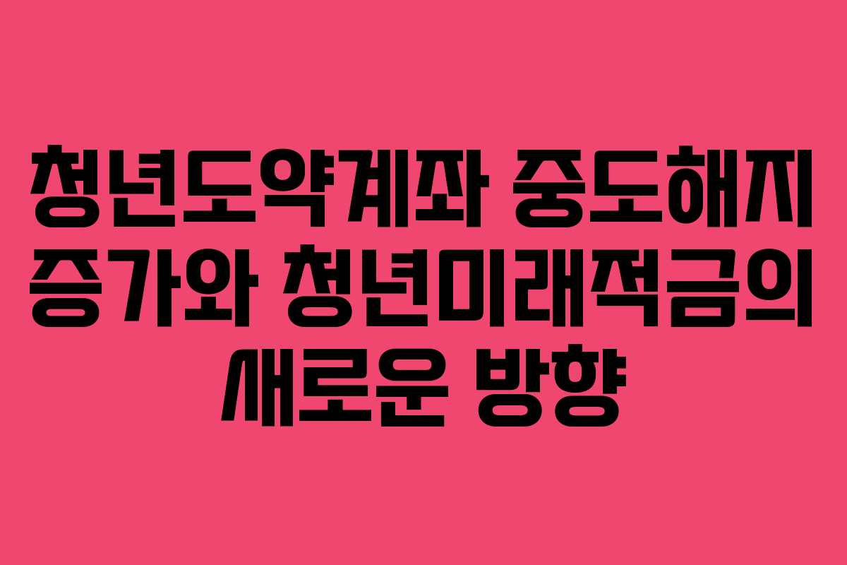 청년도약계좌는 연 9.5%의 높은 금리를 제공하면서 많은 청년들의 관심을 끌었습니다. 그러나 최근 중도해지율이 급증하고 있으며, 내년에 출시될 청년미래적금이 이러한 문제를 해결할 수 있을지에 대한 의문이 제기되고 있습니다. 이 글에서는 청년도약계좌의 이점과 단점을 살펴보고, 중도해지의 원인과 내년 청년미래적금의 변화 가능성을 분석합니다.