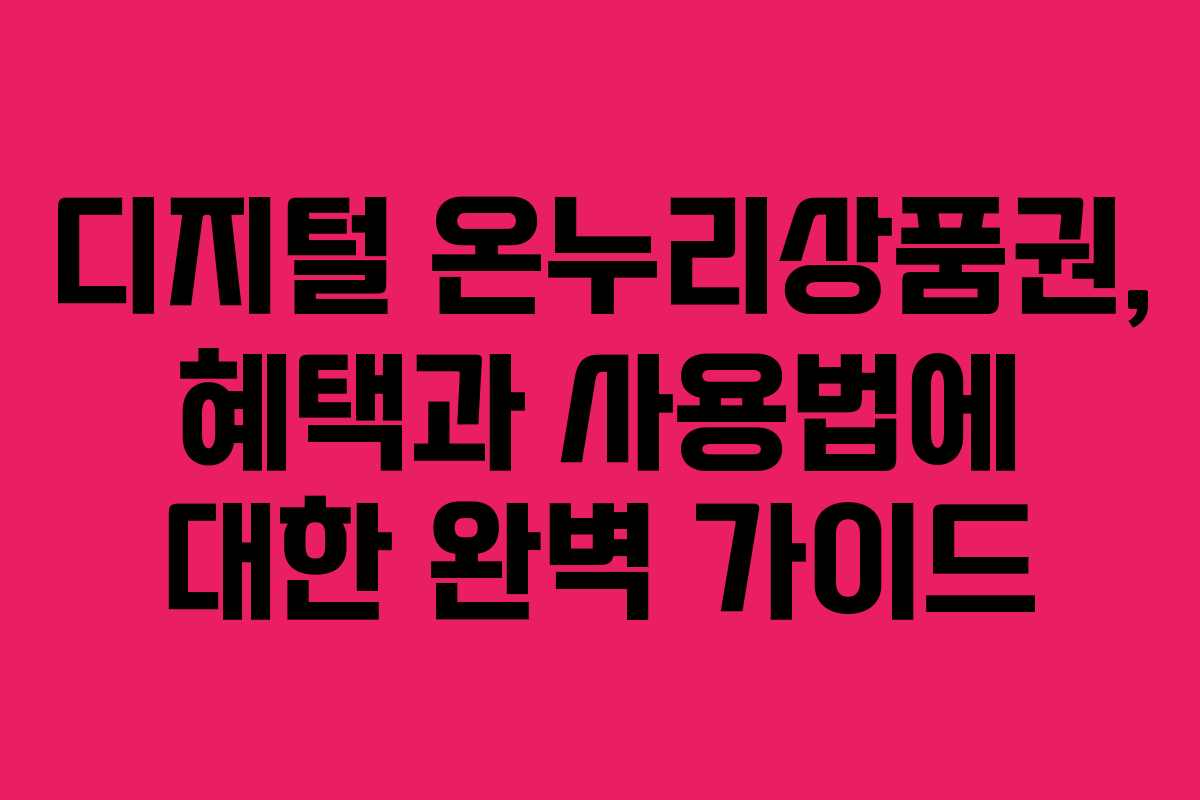 디지털 온누리상품권, 혜택과 사용법에 대한 완벽 가이드