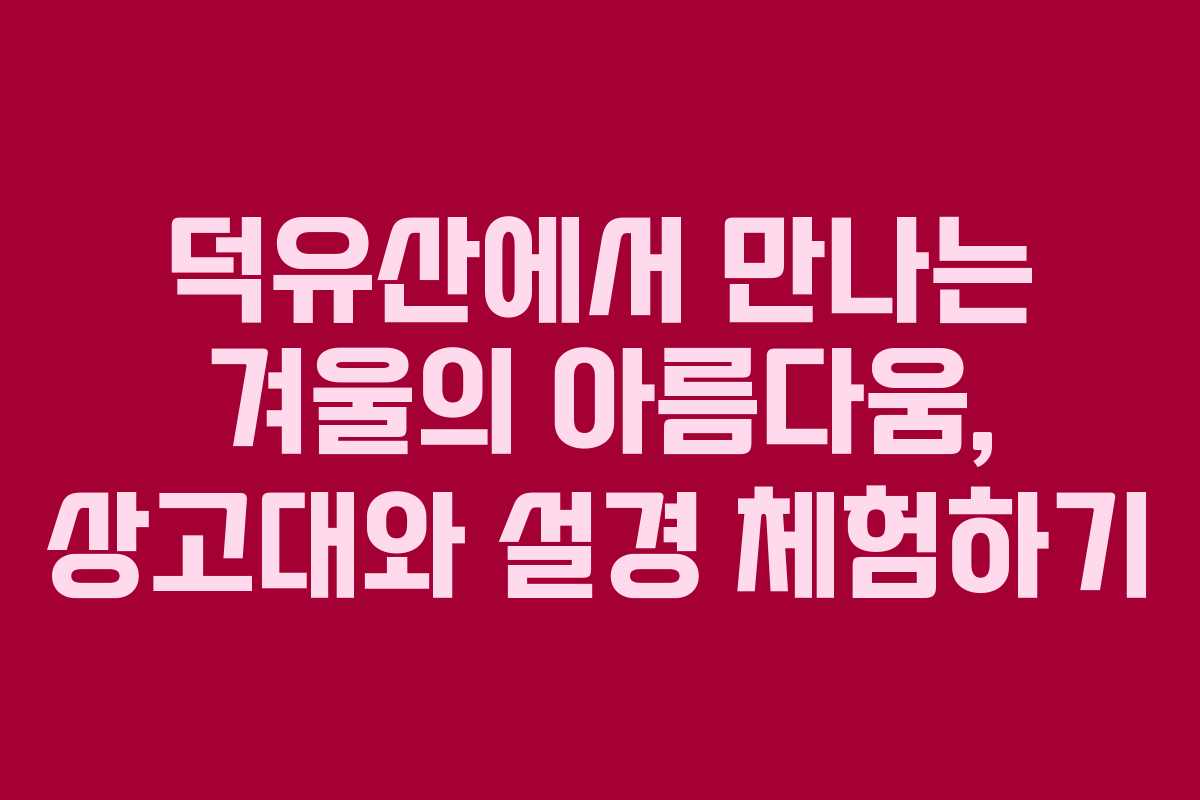 겨울철 덕유산 탐방은 사전 준비가 무엇보다 중요합니다. 기상 정보와 장비 준비를 철저히 하여 안전하고 즐거운 경험을 만들어 보시기 바랍니다. 지금 바로 탐방 계획을 세우고, 아름다운 겨울 풍경을 만끽해 보세요.