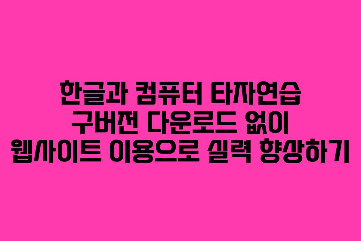 한글과 컴퓨터의 타자연습 프로그램은 한국에서 널리 사용되는 인기 소프트웨어입니다. 사용자는 다양한 기능을 통해 타자 실력을 향상시킬 수 있으며, 구버전의 특성 덕분에 많은 사용자들이 여전히 선호하는 선택지입니다. 본문에서는 구버전 다운로드 없이 웹사이트를 통해 타자연습을 효율적으로 활용하는 방법에 대해 안내합니다.