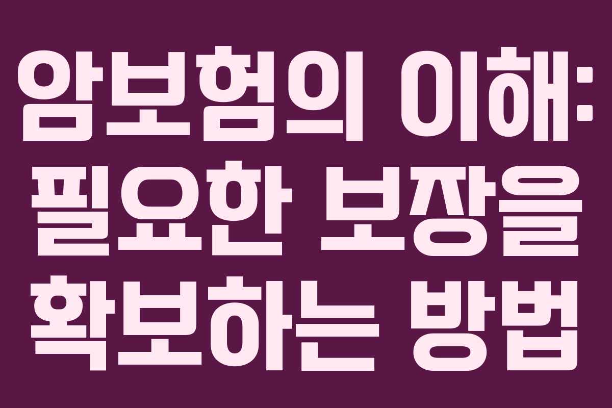암보험의 이해: 필요한 보장을 확보하는 방법