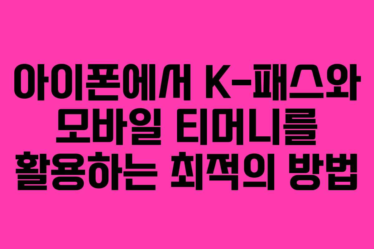 아이폰 사용자라면 모바일 티머니와 K-패스를 적극 활용하여 대중교통 이용 시 편리함과 경제적 혜택을 동시에 누릴 수 있다. 이러한 시스템을 통해 보다 스마트한 교통 생활을 경험해보길 바란다.