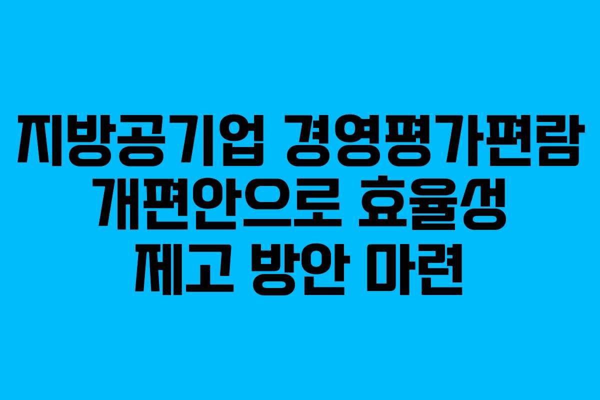 지방공기업 경영평가편람 개편안으로 효율성 제고 방안 마련