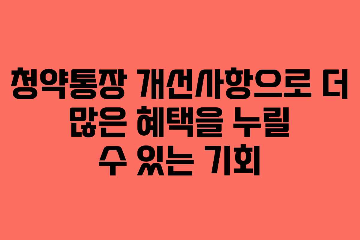 이러한 준비 사항을 통해 청약통장 가입자들은 개선된 제도를 통해 더 많은 혜택을 누릴 수 있다. 특히, 청약 기회가 확대되는 점은 많은 이들에게 긍정적인 변화로 작용할 것이다.
